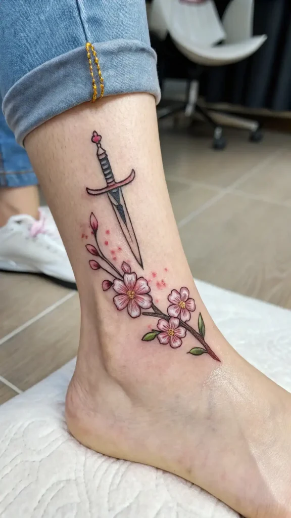 The dagger can symbolize protection or overcoming challenges, adding a layer of meaning that resonates with your journey. By choosing a floral dagger tattoo, you’re not just making a statement; you’re inviting connection with others who appreciate the blend of toughness and tenderness.