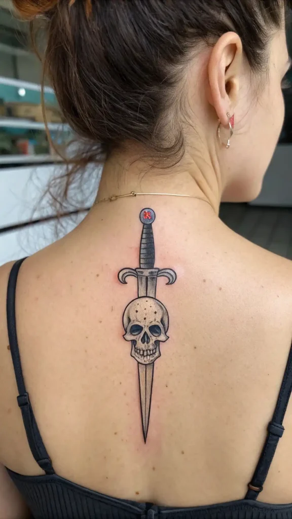 Floral motifs can soften the intense imagery, while minimalist styles offer understated elegance. And if you’re intrigued by the balance of life and death, dagger and skull combinations might resonate with you.