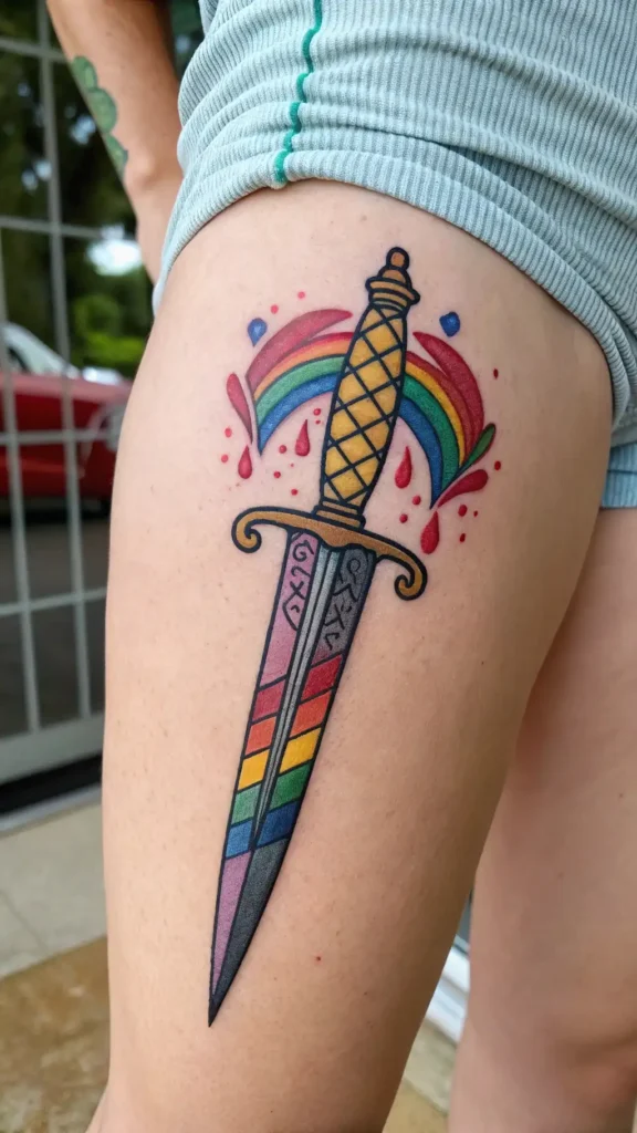 Abstract dagger tattoos can also weave in other elements, like mandalas or splashes of watercolor, creating a unique narrative that speaks to your journey.