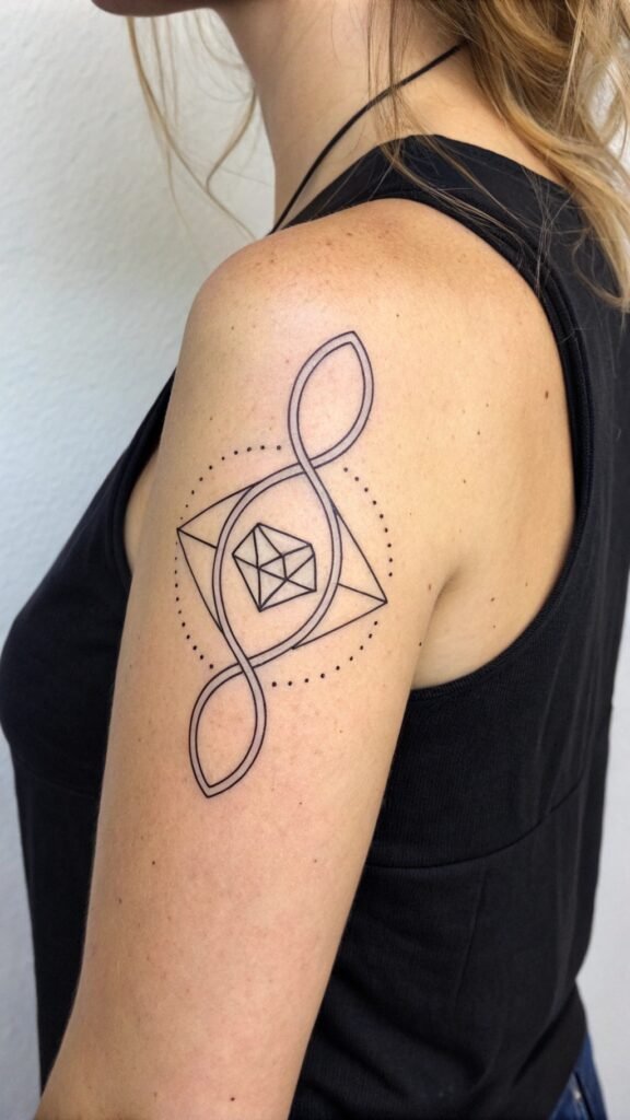 The geometric infinity shape design is a masterclass in visual storytelling, where every element is carefully crafted to convey a sense of boundless possibility.