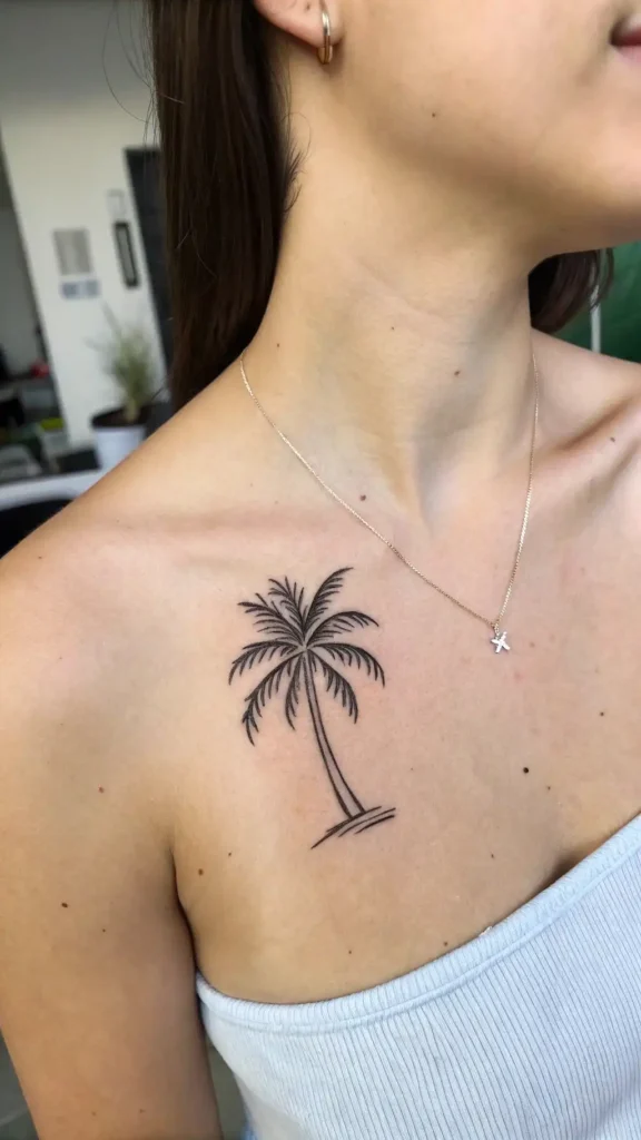 1. Minimalist Lines: Simple, clean lines outline the palm tree, providing a sleek look that’s both modern and timeless.